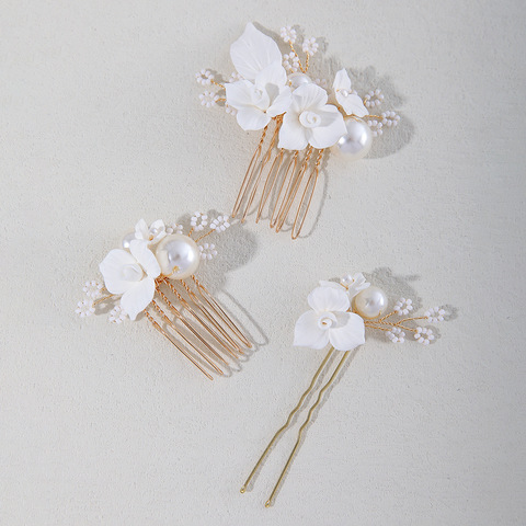 Handmade Hair Accessories Jewelry Clay Flower Pearl Beads Hair Comb Pin Set Women Headwear for Wedding