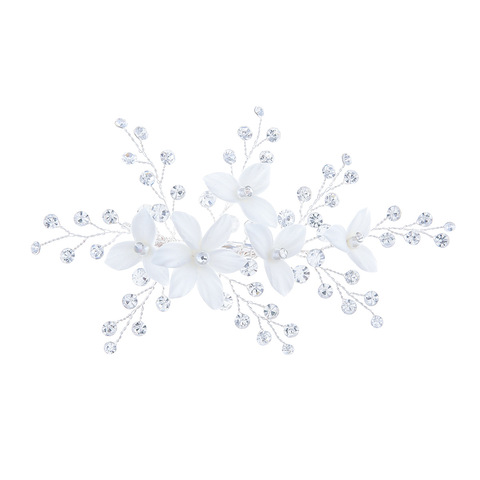 Handmade White Ceramic Flower Crystal Hair Clip Women's Bridal Barrette Hair Jewelry Headpiece for Weddings Wedding Accessories